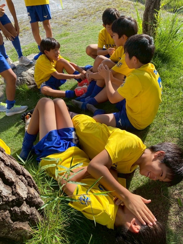 第5戦のリバストンは到着が全日のリーグ戦を北川原で行なっての移動、開始2分前にベンチに入りました。都大会では前の試合のハーフまでにチェックを受けますので失格になってしまいます。要注意ですね。試合は押し気味に進みますが先取点までにかなりの時間が係りました。得点チャンスは多いのですが得点に結びつきません。FWのレンが前回のリバストン戦と同様に相手ゴールキックから相手の選手やキーパーにプレッシャーをかけ続けてくれますので、他の選手もプレスのあとのボールが何処に出るか、どのようにカットするかのサッカー脳を働かせましょうね。レンの先取点も良かったですね。トアからのパスの受け方からのドリブル、相手キーパーの位置を確認してからのシュート、素晴らしいですね。Good!これで楽になれましたね。後半はコーナーキックにドンピシャで合わせたトアのヘディングで追加点、ハルトのパスを受けた後のドリブルからのシュートで3点目。