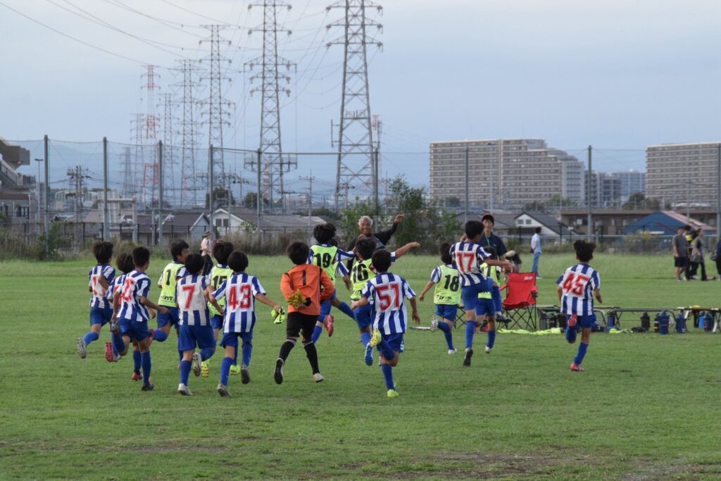 対ソルプラス戦でも開始早々タスクが抜け出しシュート、シュートはわずかに外れ,得点できませんでしたが、いい攻撃の形が有りました。試合開始前に全選手に最後まで走れと伝え、走ることを辞めたら交代と話していました。交代した選手が「なんで交代したの?」と試合後に聞きにきましたので「試合前の話をして、最後までプレスに行かず諦めたからだよ。君にはハーフでこれからの事を考えると運動量を増やすほうが中学に向けて大切なんだよ。後半に再度、投入したのは得意なドリブルで走りぬいて欲しいと思ったから。これから中学に向けて大切な事は最後まで走りぬく自信と体力だと伝えました。校半半ばに相手にフリーキックを与えましたが、シュンペイのナイスセーブ、ベンチ席でも「オー!」の歓声、素晴らしい瞬発力でした。Good!!後終了3分前ぐらいに抜け出して落ち着いてゴール右隅にシュート、先取点です。ベンチとフィールドで大歓声!良く決めました。Good!「焼肉!」の声も聞こえましたね。トーナメント1回戦・2回戦を勝ち抜き都大会出場です。おめでとう!